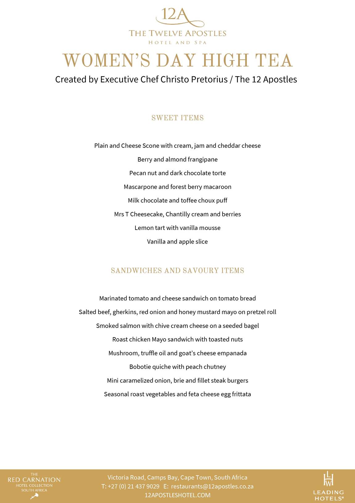 Why not spend the day with the special women in your life over Sunday High Tea specially prepared by Executive Chef Christo Pretorius and Head Pastry Chef Gina Marziani?