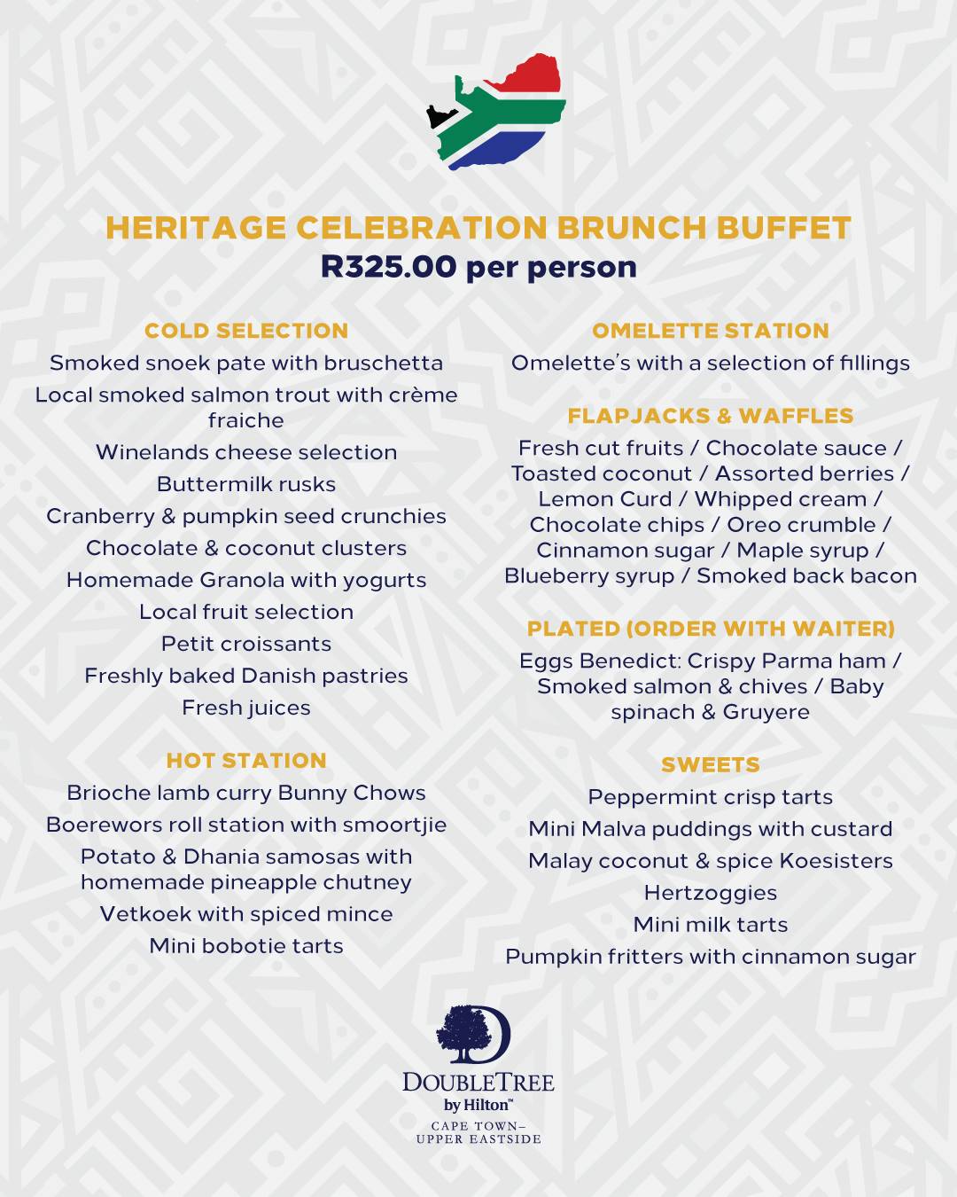 A fantastic buffet menu is available for only R325 pp on 25 September 2022.