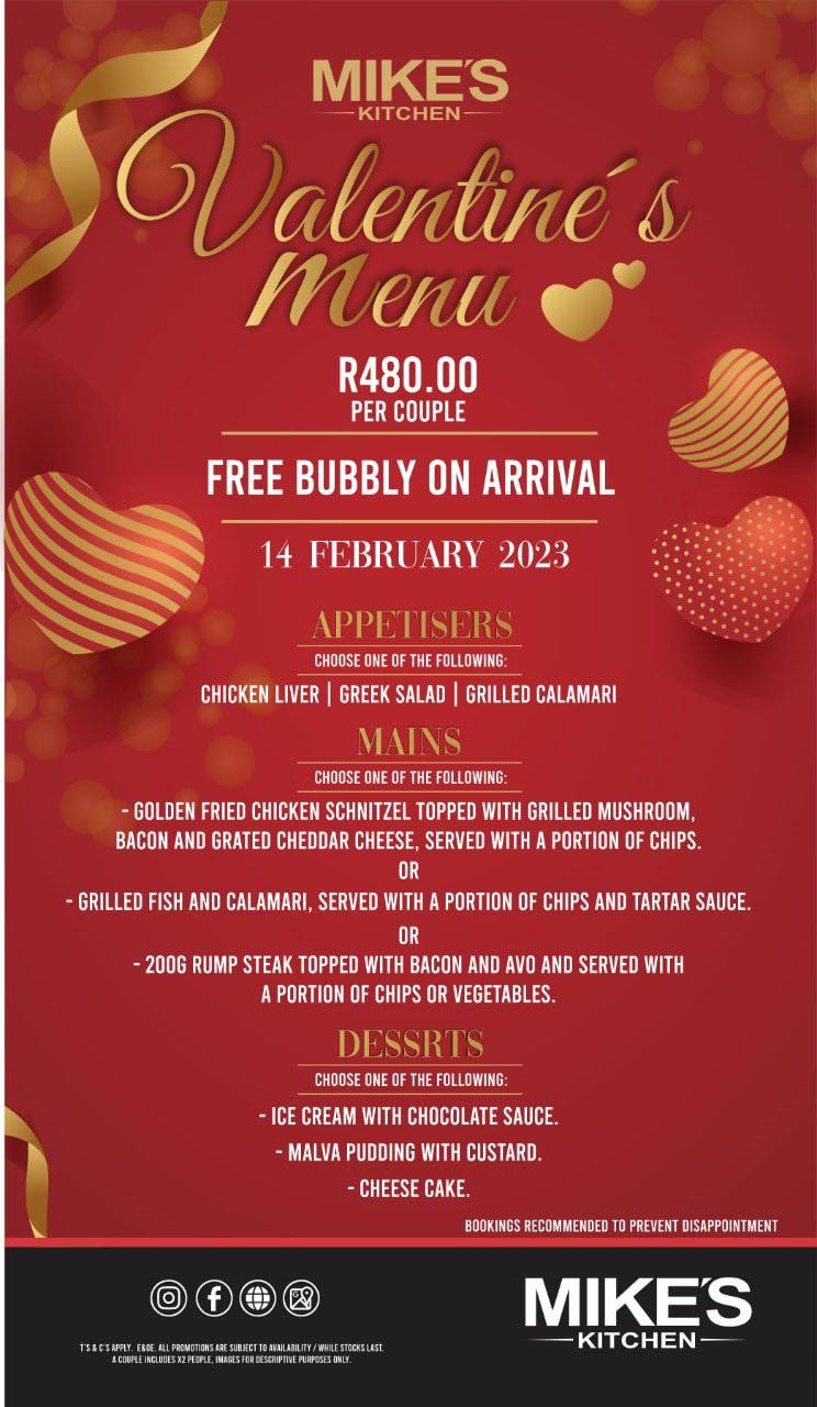 Valentine’s Day is the most romantic time of the year, and there’s no better place to celebrate your love than at Mike’s Kitchen in Park Square Umhlanga.