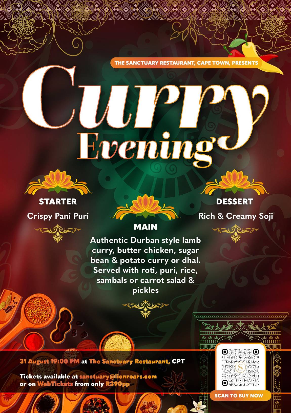 Get ready for a vibrant evening of flavor at The Sanctuary Restaurant’s Durban Curry Night on 31 August, starting at 7 PM.