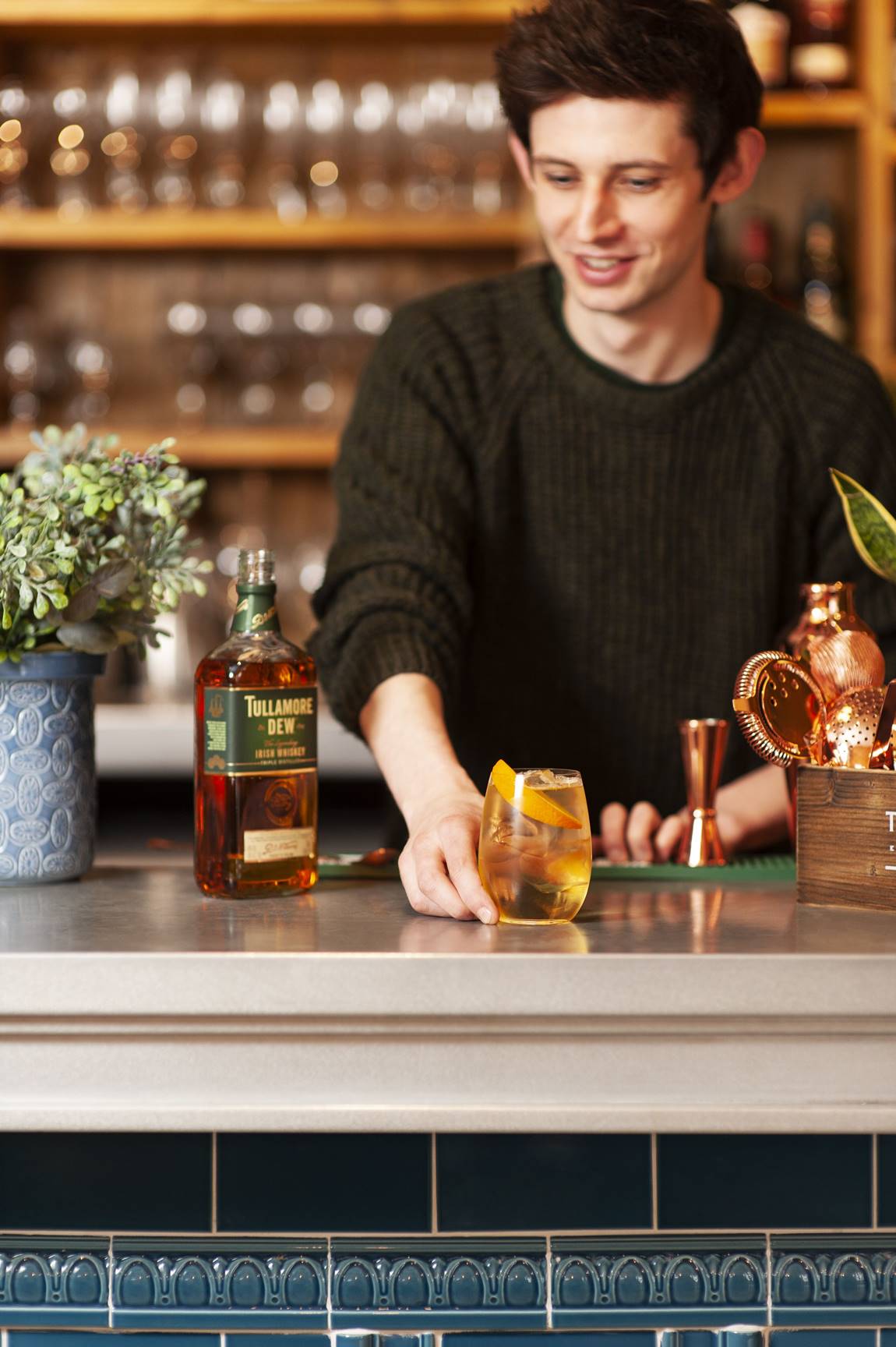 - Fill glass with cubed ice and stir to dilute, adding 50ml Tullamore D.E.W. slowly.