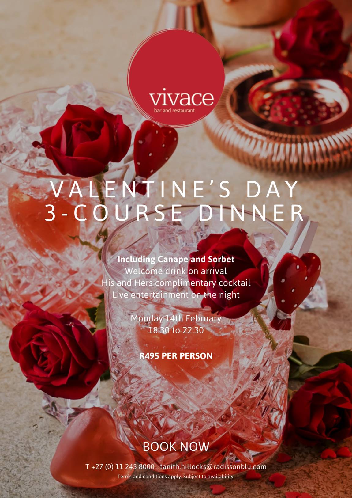 Join Radisson Blu Sandon’s Vivace Restaurant for a lavish 3-course Valentine’s Dinner at which overlooks the beautiful Sandton skyline.