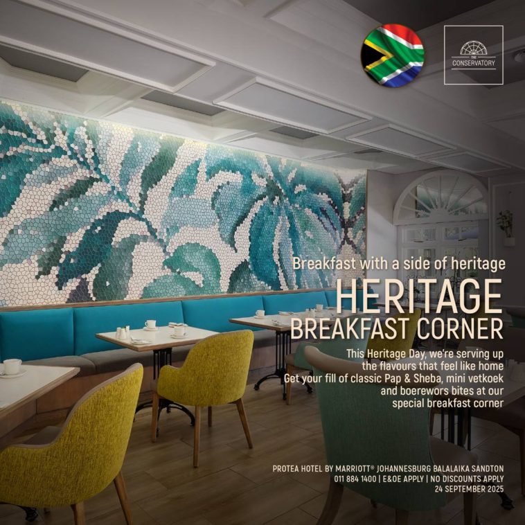 - On 24 September, guests can tuck into hearty, homegrown classics like pap & sheba, mini vetkoek, and boerewors bites—dishes that carry the unmistakable taste of tradition. Whether you’re kicking off a day of celebrations in Sandton, gathering with friends, or simply treating yourself to a nostalgic morning meal, this Heritage Day breakfast offers the perfect mix of local flavour and hotel elegance.