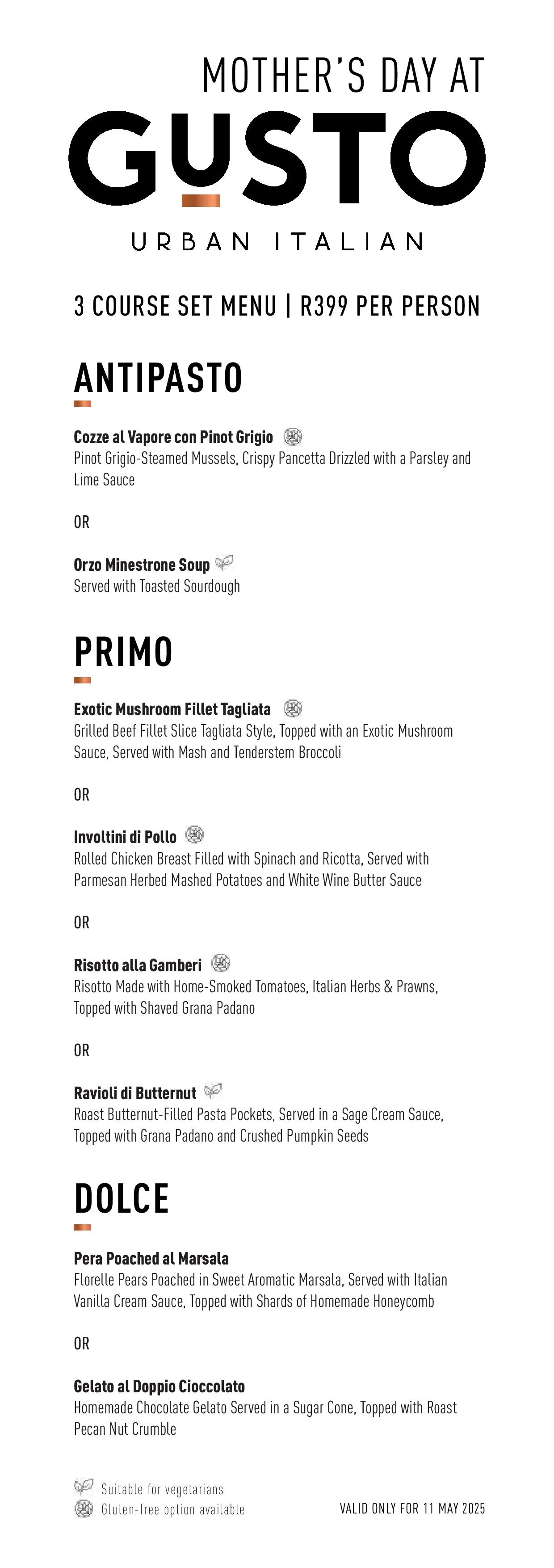 Forget the flowers and skip the scented candles—Gusto Urban Italian is dishing up amore by the forkful on Sunday, May 11th, from 12:00 to 15:00 with a special three-course feast that’ll make your mamma weep (with joy, obviously).