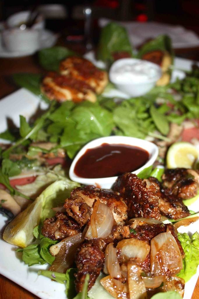 We started with a 500ml bottle of very nice and affordable Bob’s Your Uncle red wine for just R40 along with three starters served on a platter.