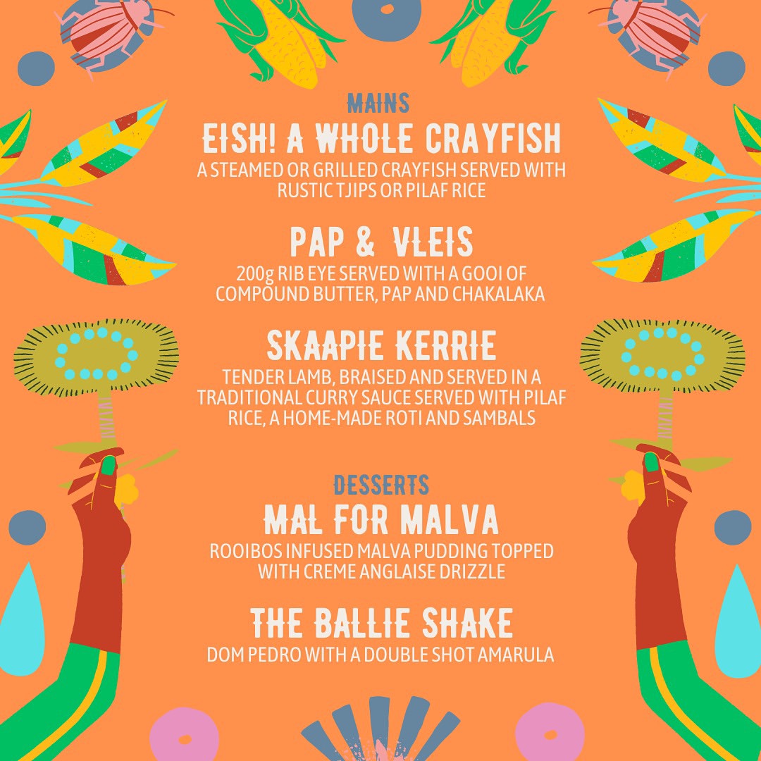 For dessert, the iconic Mal for Malva puts a rooibos twist on the traditional malva pudding, and the indulgent Ballie Shake delivers a Dom Pedro with a double shot of Amarula, making for the perfect end to a truly local meal.