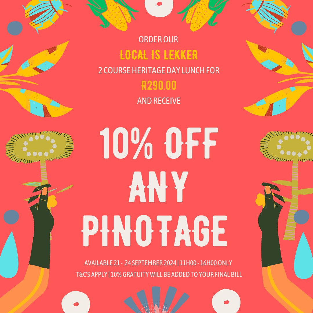 From September 21st to 24th, the popular restaurant invites you to indulge in a two-course feast for just R290.00, complete with an added treat — 10% off any Pinotage.