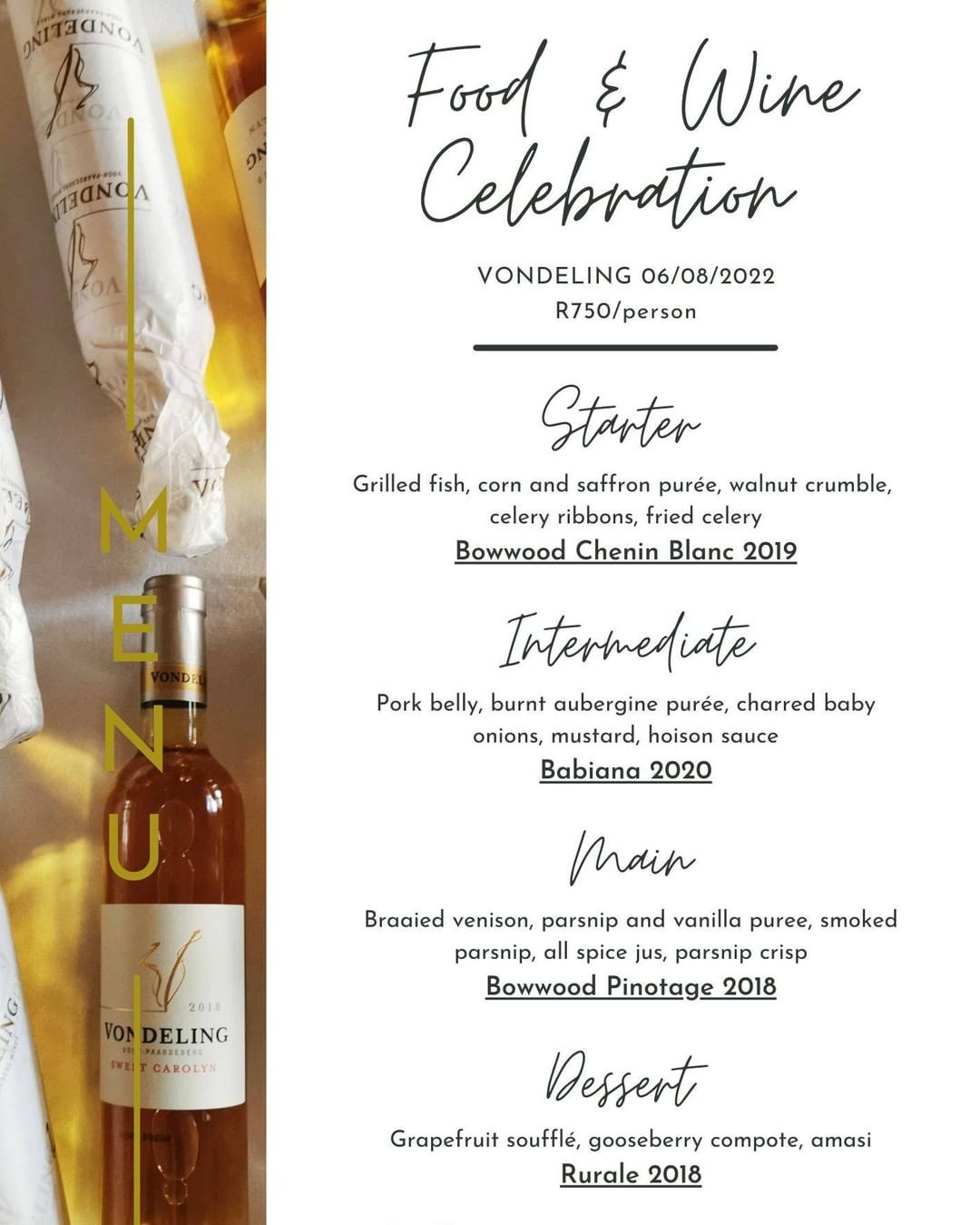 They will be hosted a 4 course wine & dine evening on 6 August with Vondeling Wines.