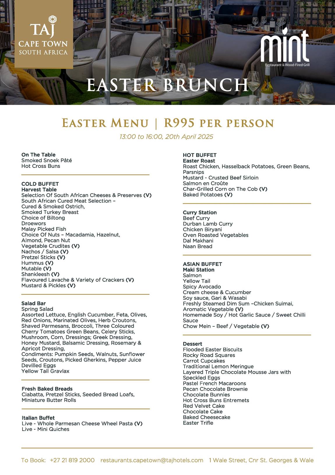 The Taj Cape Town has it covered. This year, the five-star inner-city hotel is throwing a lavish Easter buffet at its stylish Mint Restaurant—and it’s everything you’d want from a celebration: deliciously, family-friendly, and bursting with flavour.