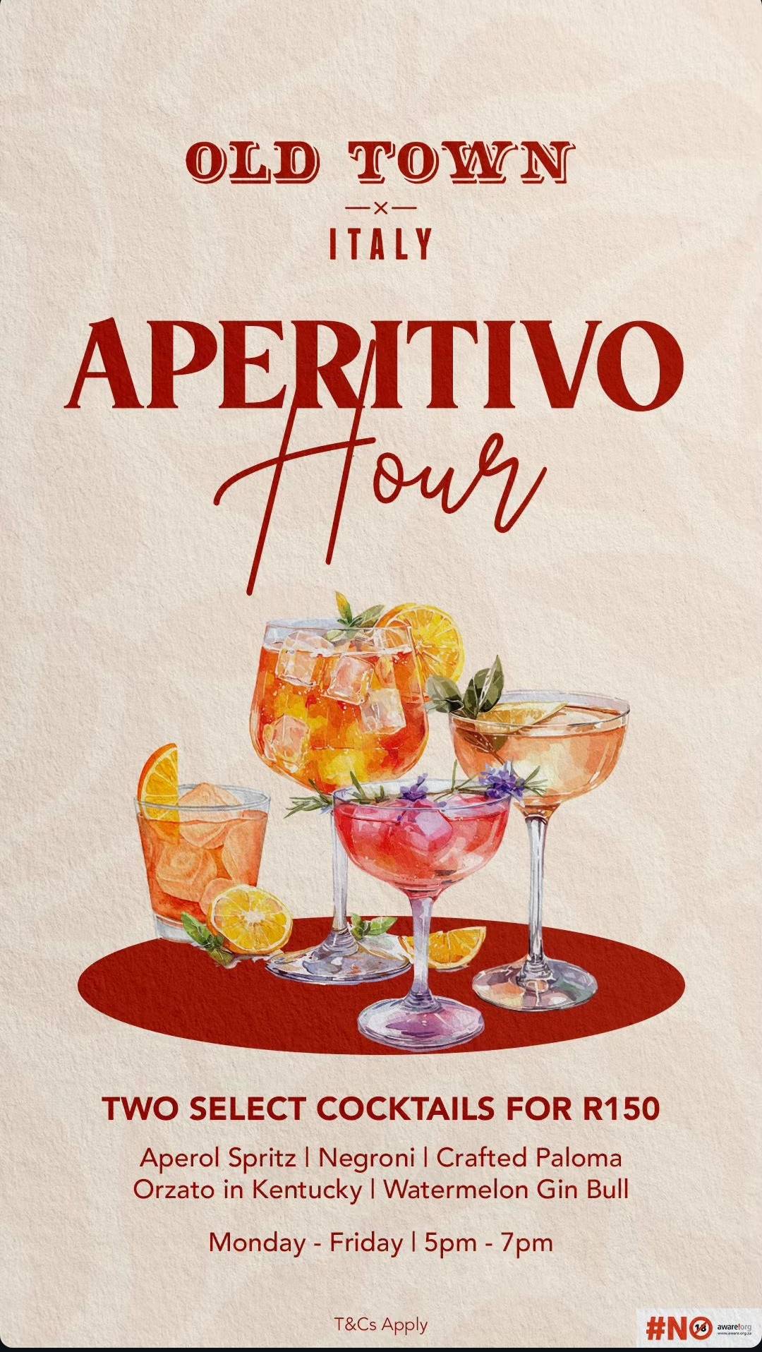 What’s on offer? Choose from Aperol Spritz, Negroni, Crafted Paloma Orzato in Kentucky and Watermelon Gin Bull cocktails. Book your table to enjoy a wonderful afternoon at Old Town Italy!