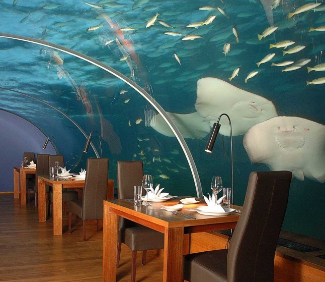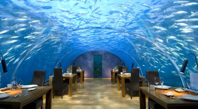 How would you like to have dinner some 5 meters below sea level surrounded by water?