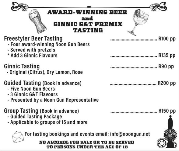Join for a award-winning Noon Gun Beer or Ginnic G&T Tasting