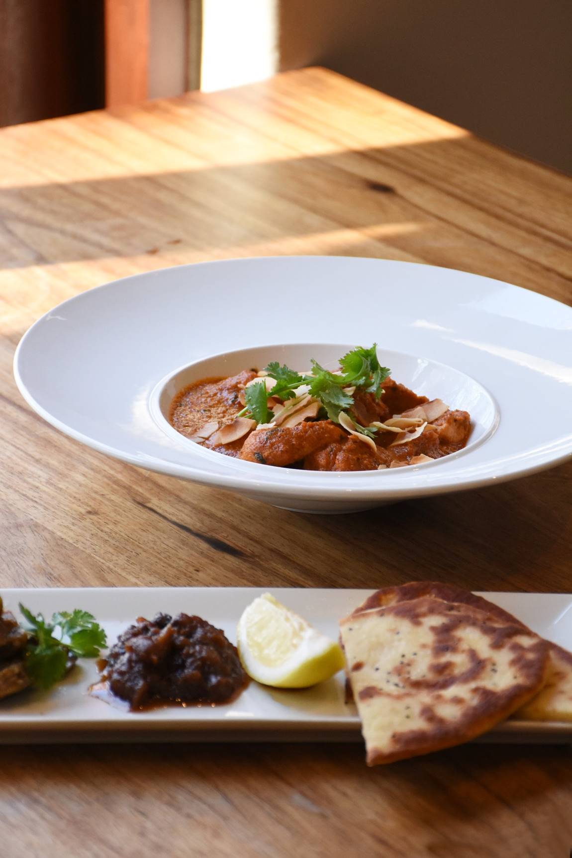 The Leroy’s butter chicken presents a tantalizing blend of flavors and textures. Prepared with locally sourced, pasture-reared Winelands chicken, this classic winter dish features tender chicken immersed in a rich and creamy tomato-based sauce. The succulent chicken is perfectly complemented by an array of delectable accompaniments. The chia seed naan bread, baked to perfection, adds a delightful twist to the traditional Indian bread, while the curried aubergine relish provides a touch of exotic spiciness. To enhance the experience further, the dish is accompanied by in-house spiced apple chutney, offering a sweet and tangy element. The garnish of flaked coconut and fresh coriander adds a burst of freshness, elevating the overall presentation and taste.