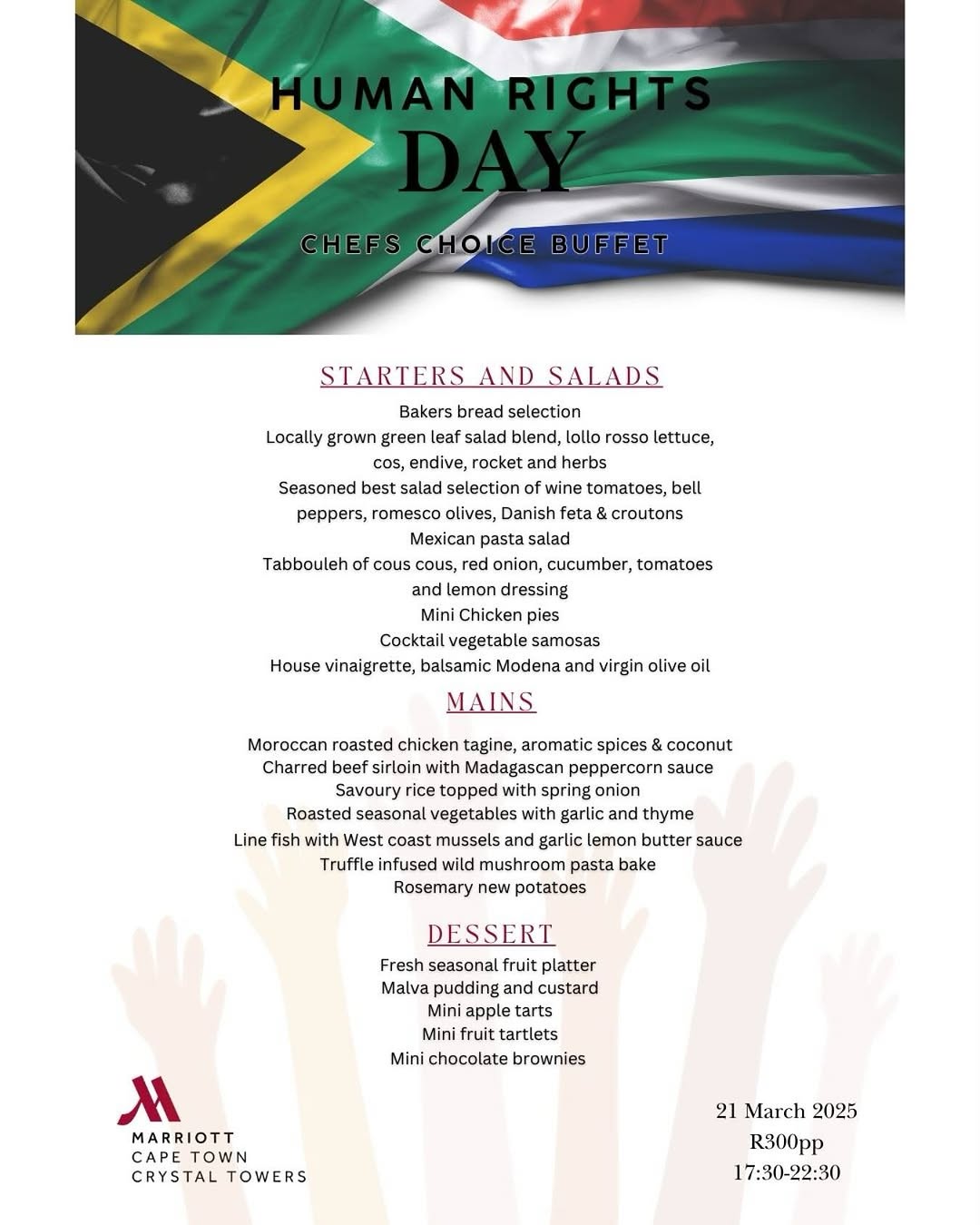 Celebrate the spirit of unity, diversity, and delicious food this Human Rights Day at Cape Town Marriott Hotel Crystal Towers!