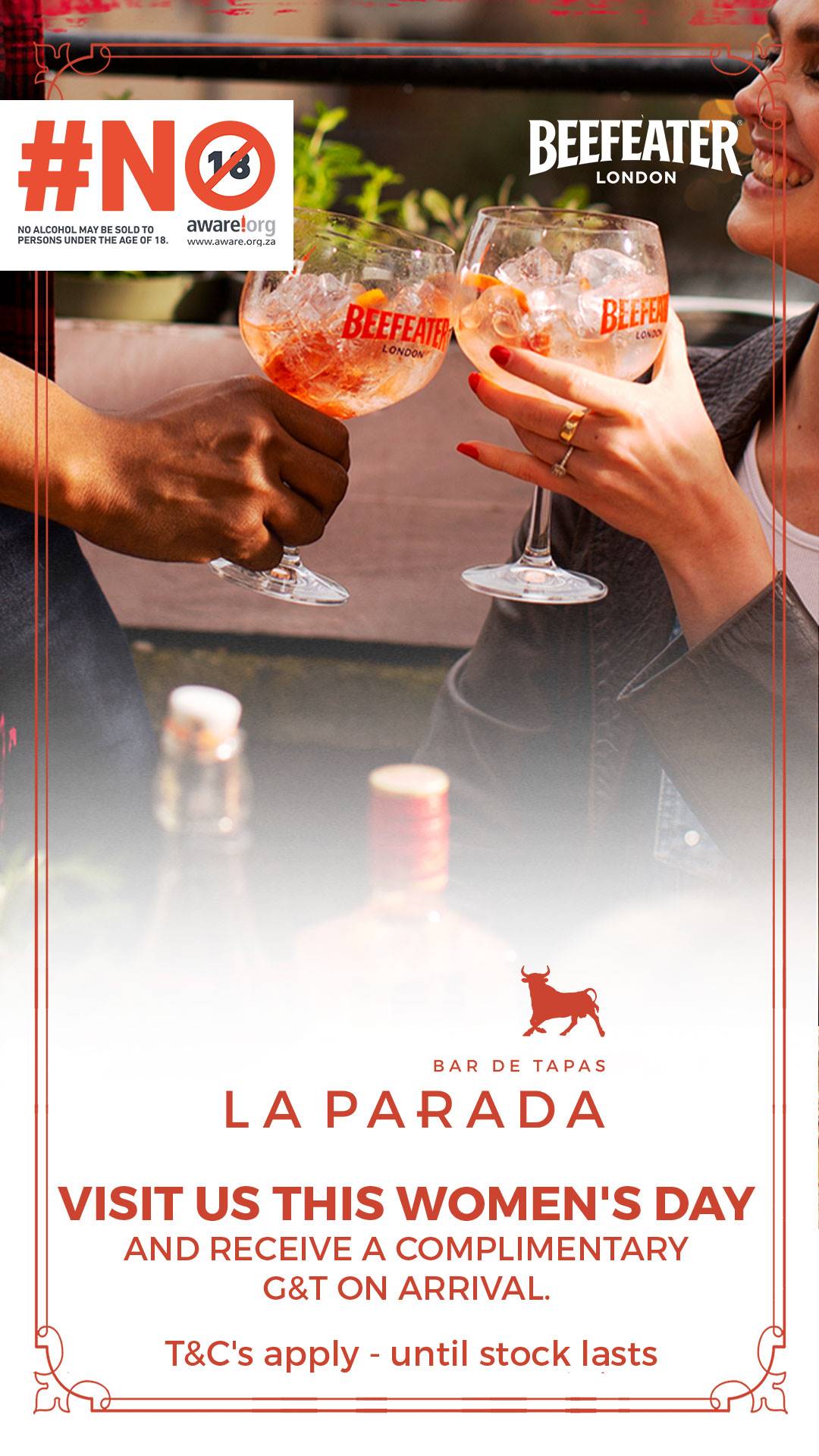 Receive a complimentary Beefeater Gin & Tonic on arrival just by visiting La Parada on Women’s Day. Until stocks last.