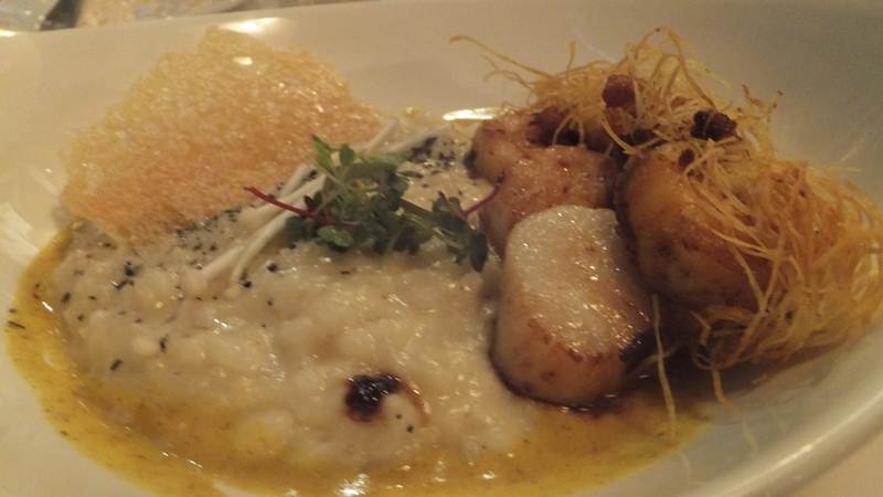 Seared Canadian scallop on a white asparagus risotto with a lightly curried beurre blanc. (Signature Dish)