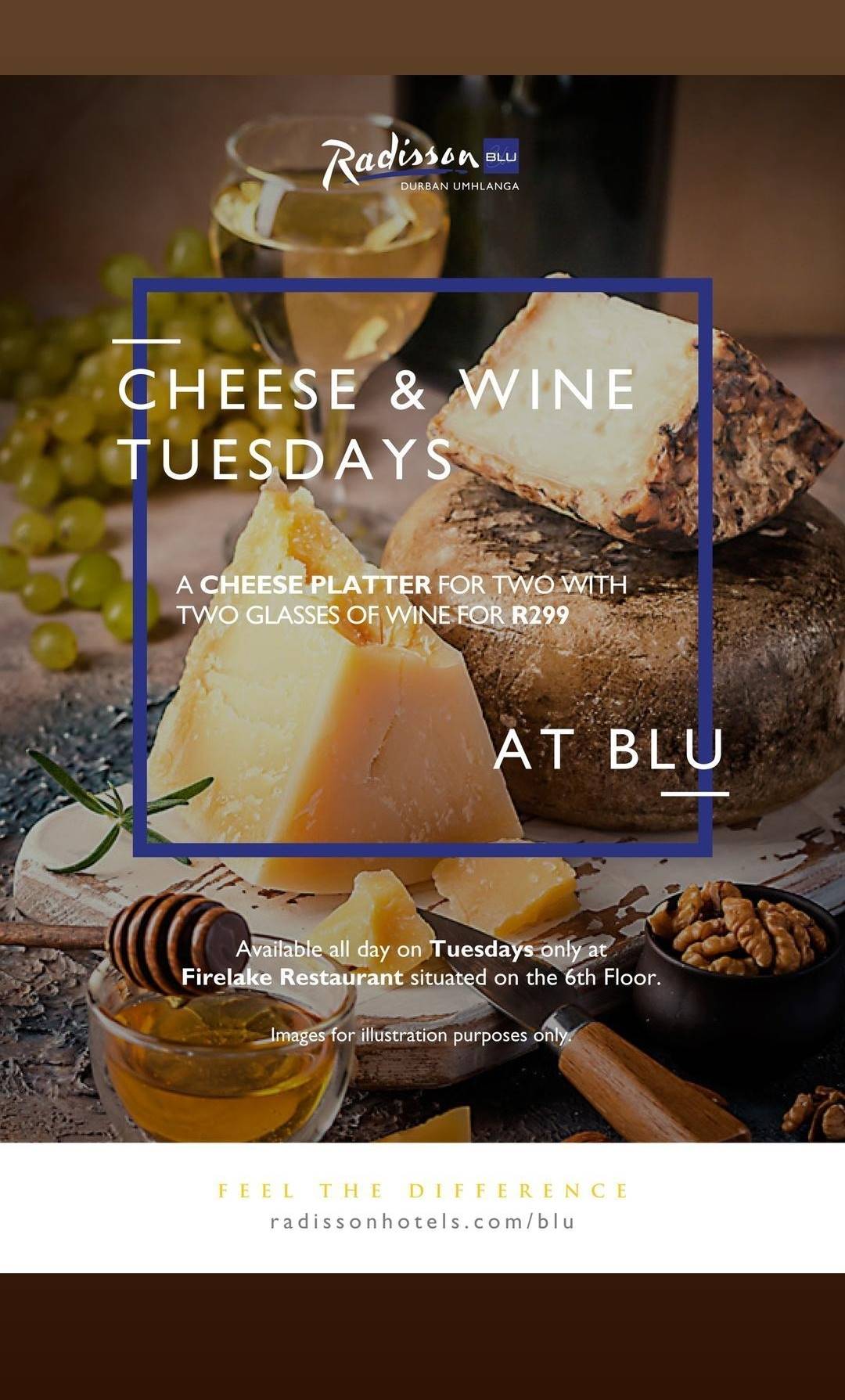 Every Tuesday, the restaurant invites guests to indulge in a tantalizing cheese platter for two, accompanied by two glasses of exquisite wine, all for a remarkable R299.
