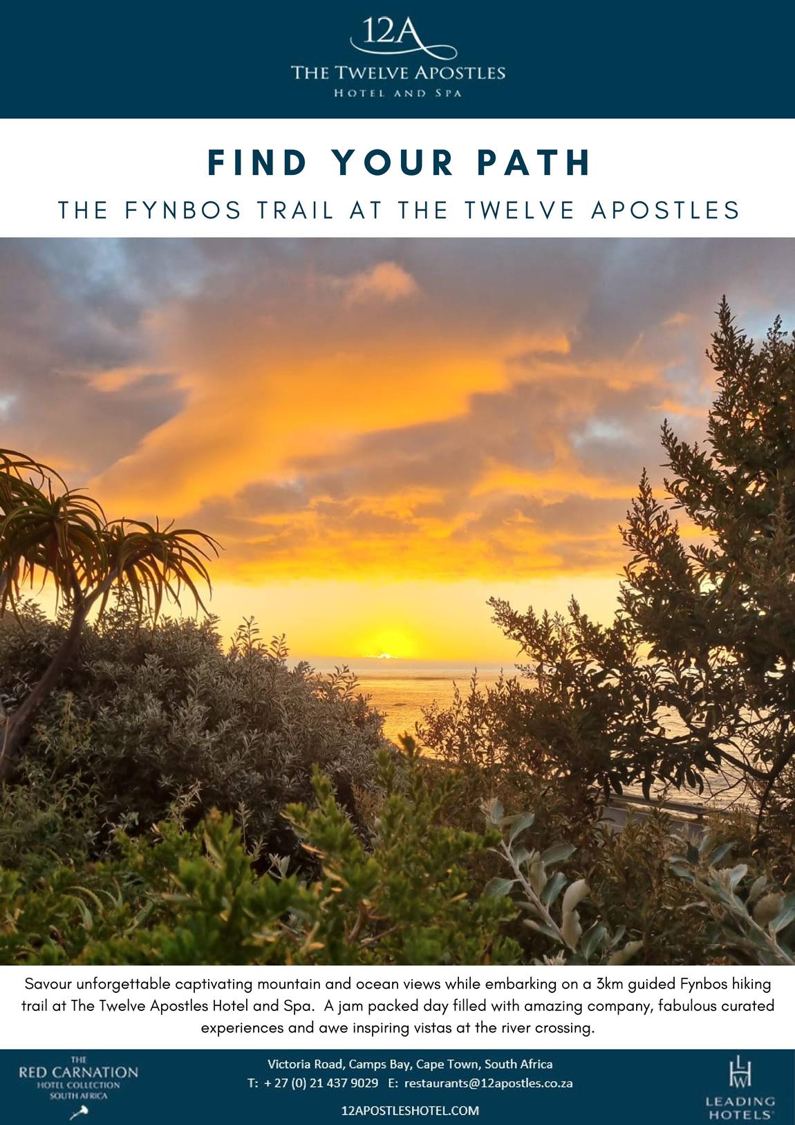 Savour unforgettable captivating mountain and ocean views while embarking on a 3 km guided Fynbos hiking trail at the Twelve Apostles Hotel and Spa. A jam packed day filled with amazing company, fabulous curated experiences and awe inspiring vistas at the river crossing.