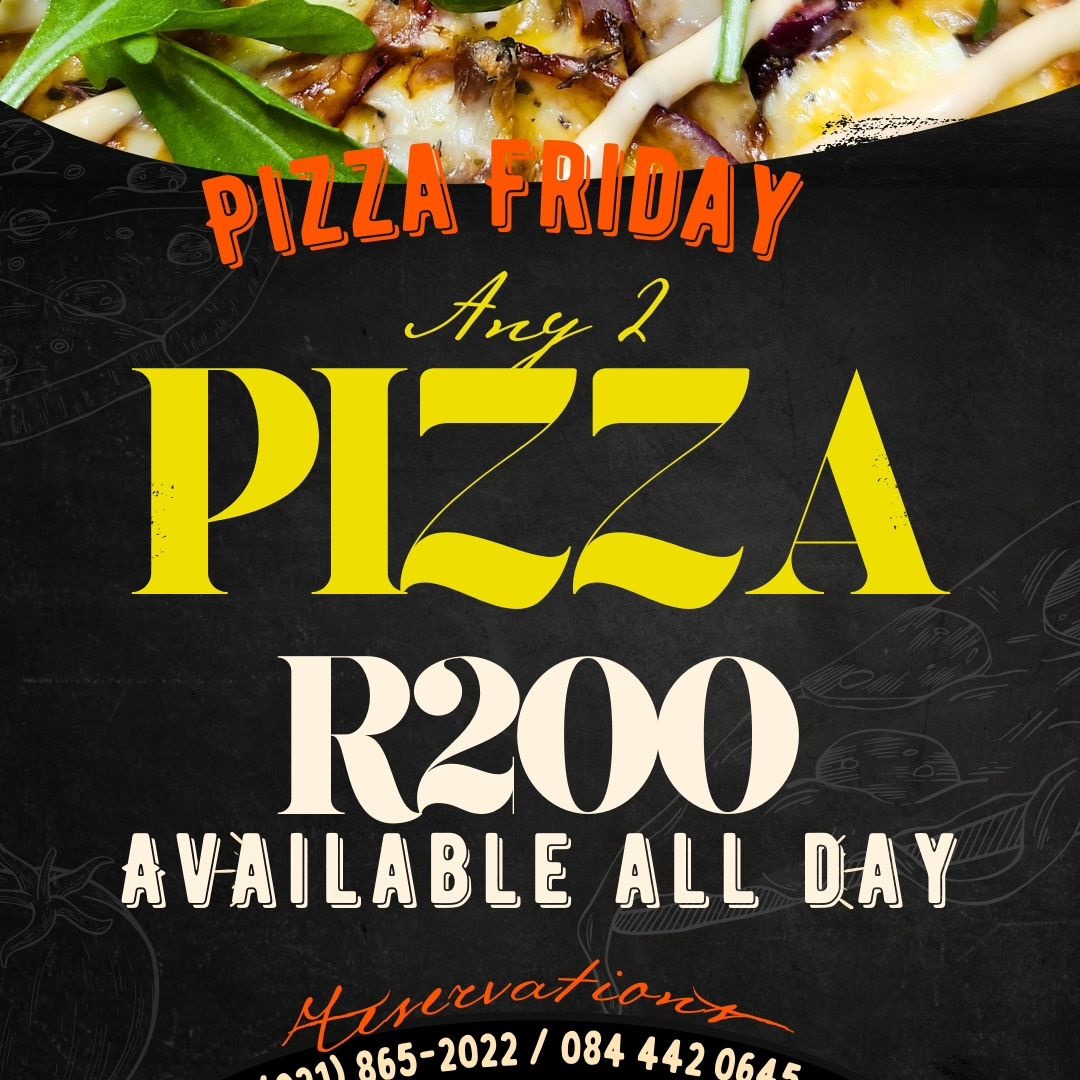 Every Friday, patrons can enjoy the ultimate pizza feast with any 2 pizzas for just R200.