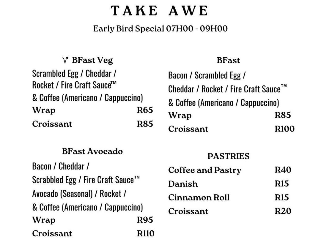 Don’t let the morning traffic get you down. Fire Craft Restaurant’s take-away breakfast is ready FAST and waiting to make your morning commute through Durbanville a whole lot more enjoyable.