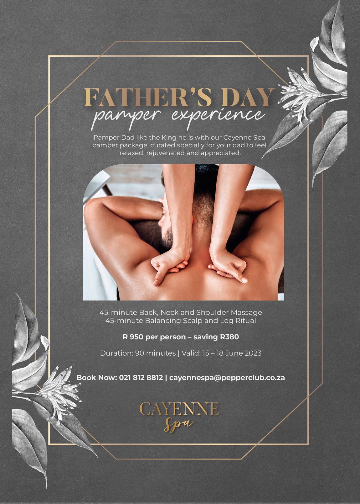 To secure this extraordinary experience for your dad, be sure to book in advance by calling 021 812 8812 or emailing cayennespa@pepperclub.co.za.