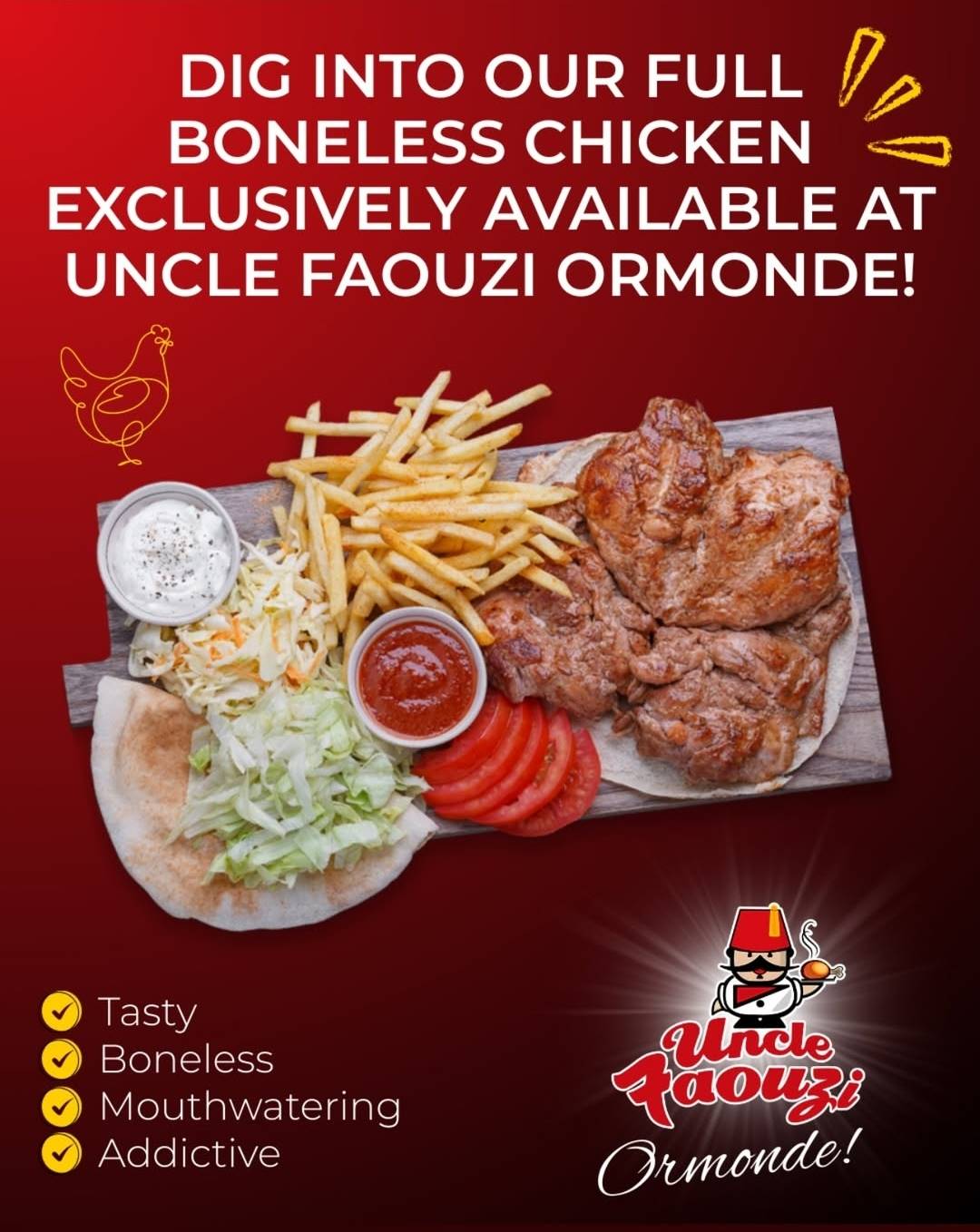 Uncle Faouzi Ormonde has officially raised the bar with their full boneless chicken platter, and trust us, it’s every bit as epic as it sounds.