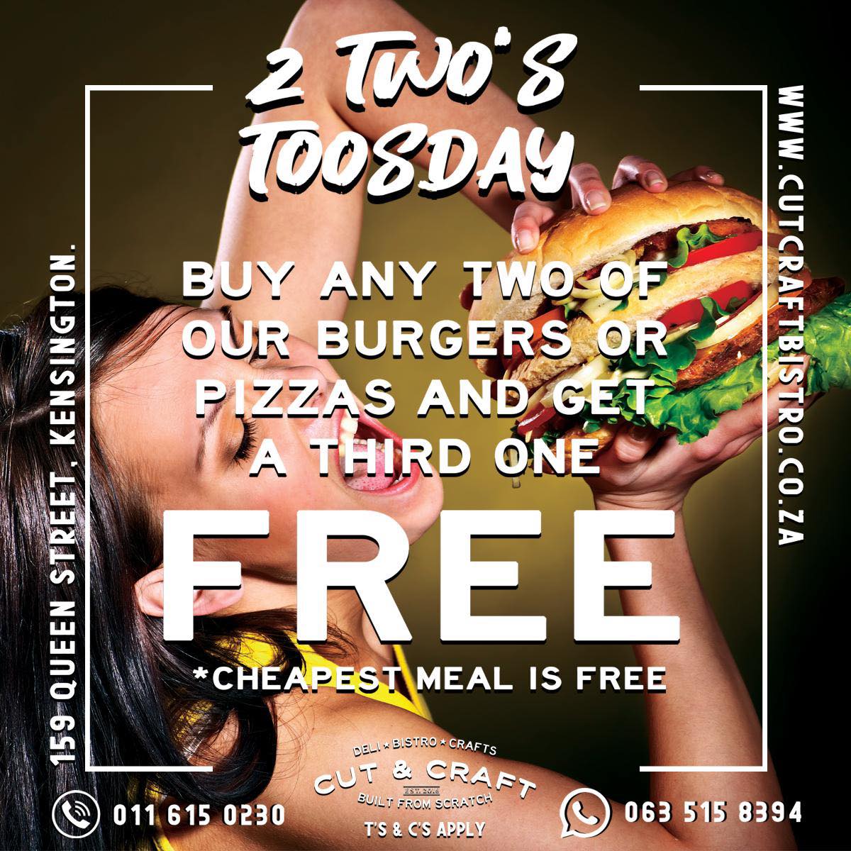 The friendly team at Cut & Craft Bistro is ready to serve you, and they can’t wait to see you enjoy their delicious meals. Don’t miss out on this fantastic offer – head over to Cut & Craft Bistro and indulge in some tasty pizzas and burgers at a great price. We look forward to seeing you there!