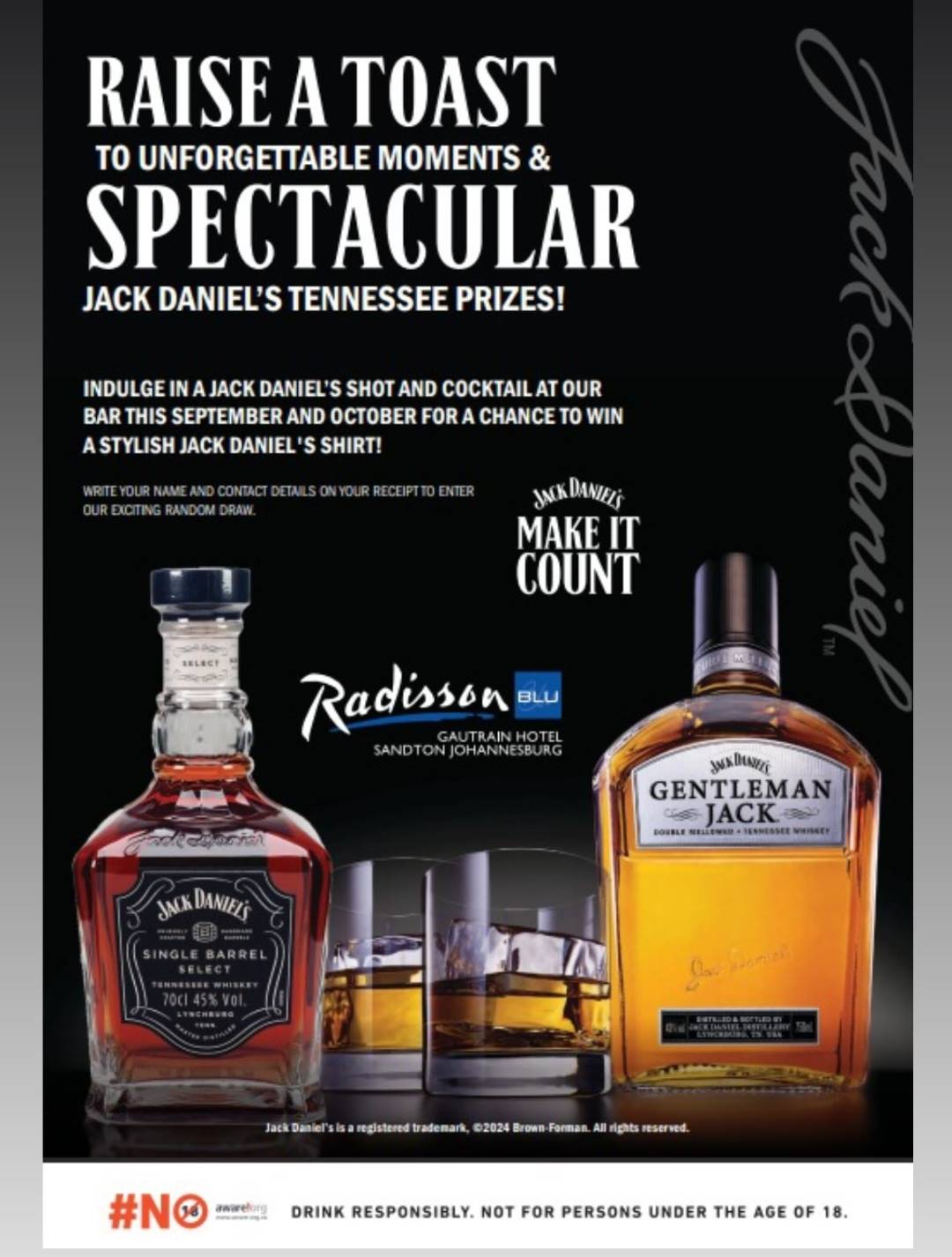 Don’t miss out on this exciting promotion, available exclusively at Radisson Blu Gautrain Hotel’s bar. Head over today to savour your favourite Jack Daniel’s whiskey and stand a chance to take home a stylish prize that’ll keep your nights memorable.