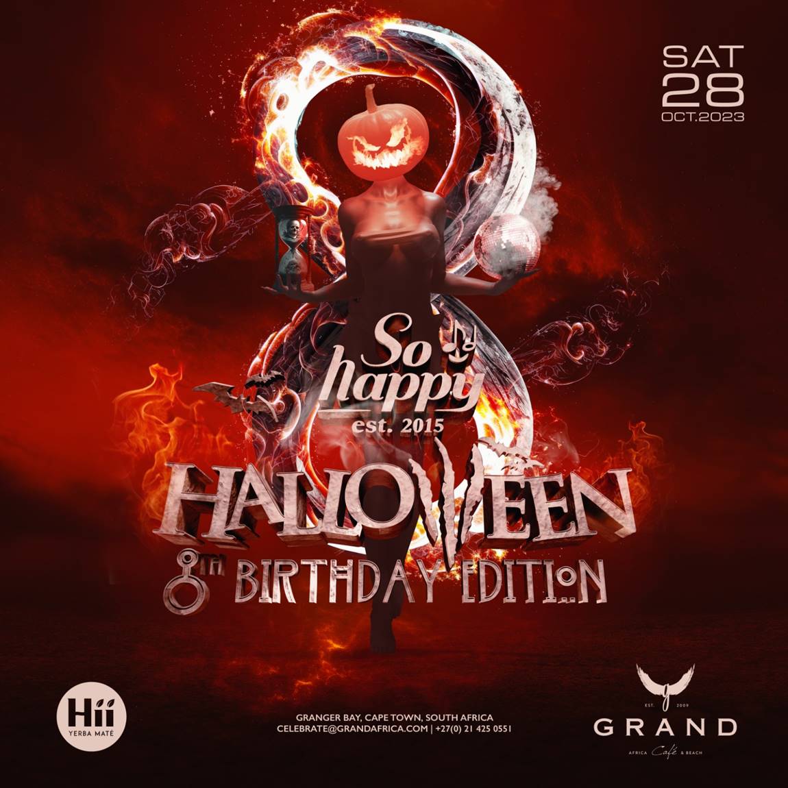 Tickets are limited, so grab yours now for Cape Town’s best and biggest Halloween party, and join in the celebration of So Happy Entertainment Group’s 8th-year anniversary in style. Get ready to be amazed and thrilled at the So Happy Halloween 8th Year Edition, right on the beautiful shores of Grand Africa Cafe and Beach.