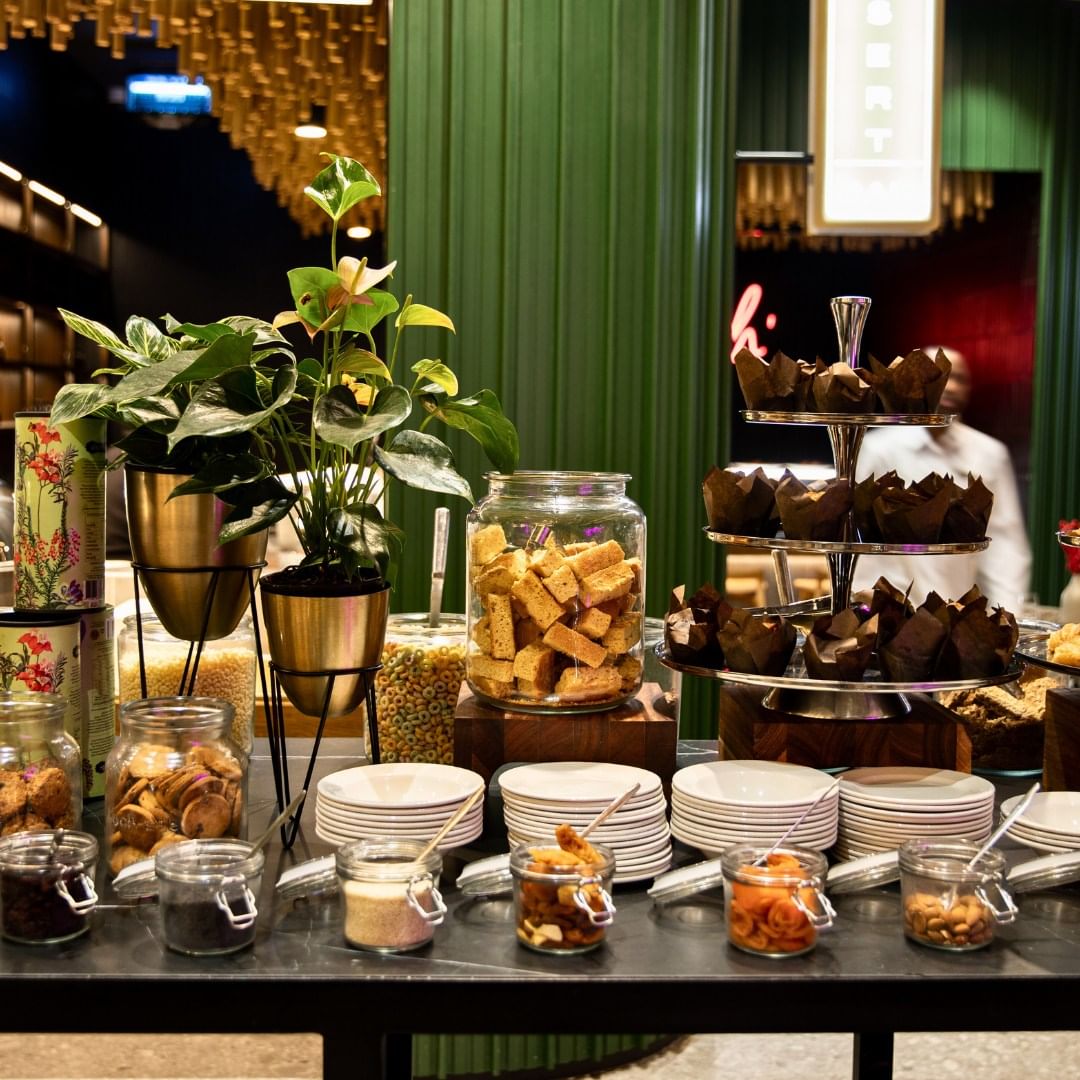 - Indulge in a variety of heavenly pastries, farm-fresh fruit, and gourmet cereals, or opt for the sizzling lineup of hot dishes that include many breakfast classics. For those who prefer a personalized touch, the made-to-order omelette station allows you to customize your omelette with a selection of fresh ingredients, ensuring a perfect start to your morning.