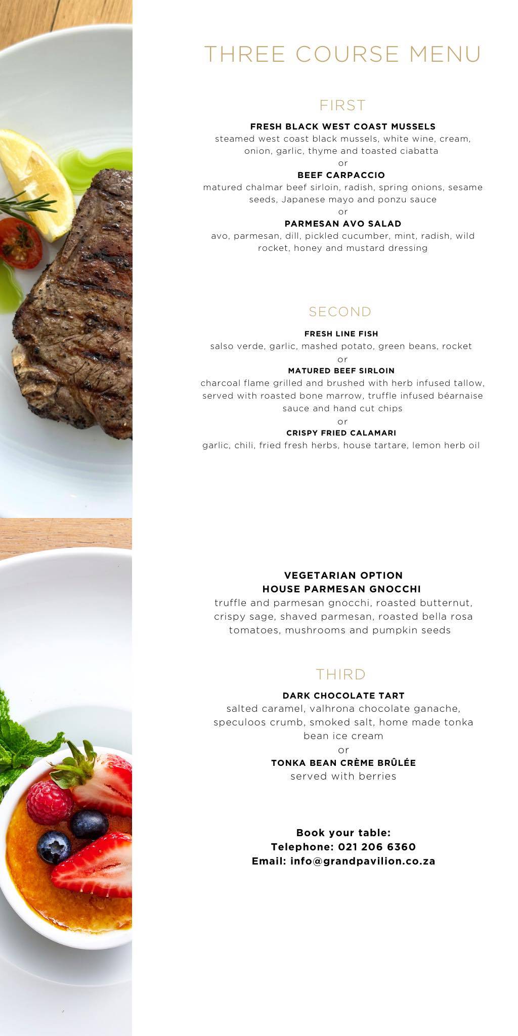 - At Grand Pavilion, renowned for its elegant atmosphere and culinary expertise, every detail is meticulously crafted to ensure a memorable dining experience. The Father’s Day Set Menu, priced at R475 per person, offers a tantalizing selection of dishes that will please even the most discerning palate. From perfectly cooked steaks and delectable seafood to mouthwatering desserts, each dish is prepared with the utmost care and expertise.