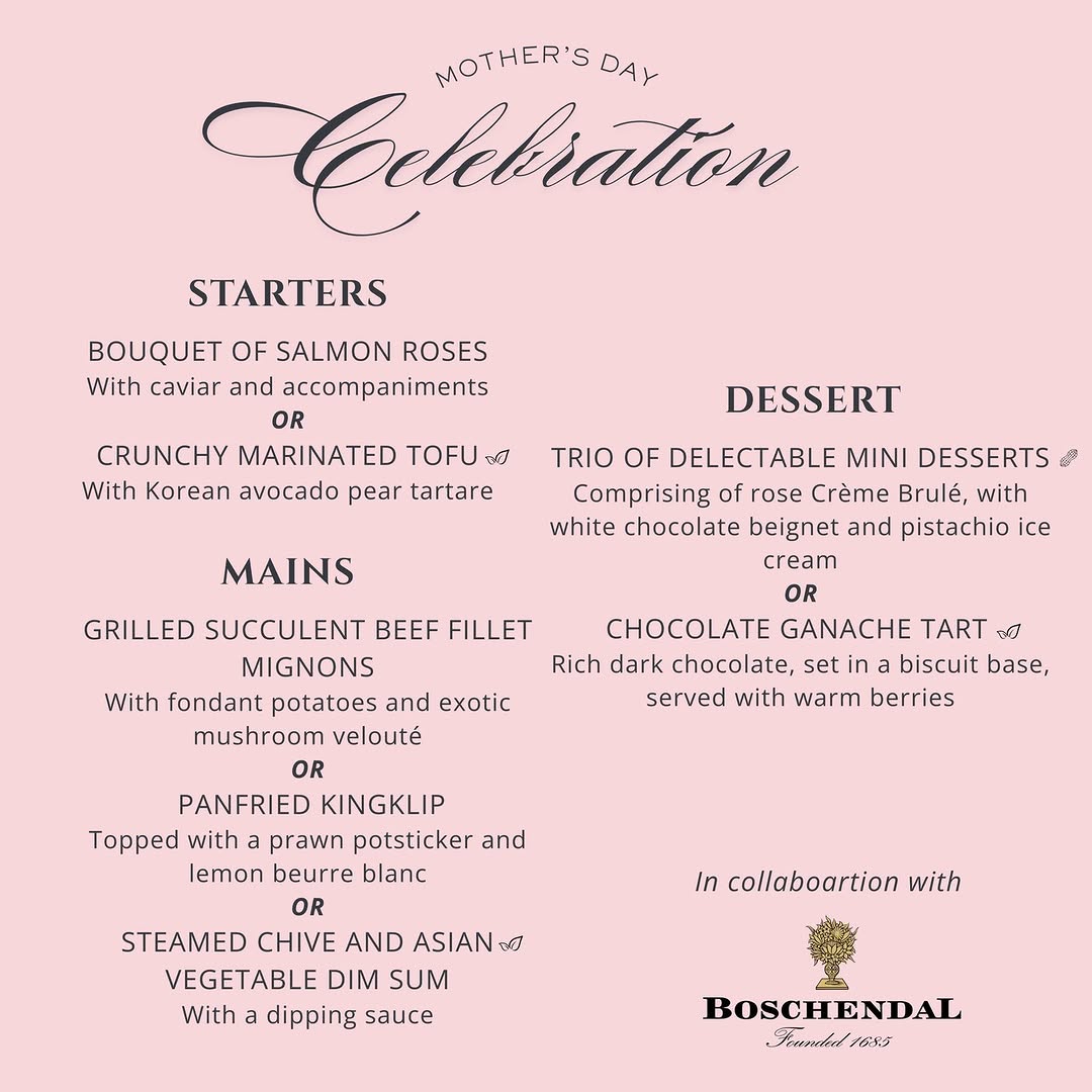 - Moms are welcomed with a complimentary glass of Boschendal bubbles, because prosecco is fine, but proper bubbly is what she deserves. It’s classy, it’s celebratory, and it sets the tone for what’s coming.