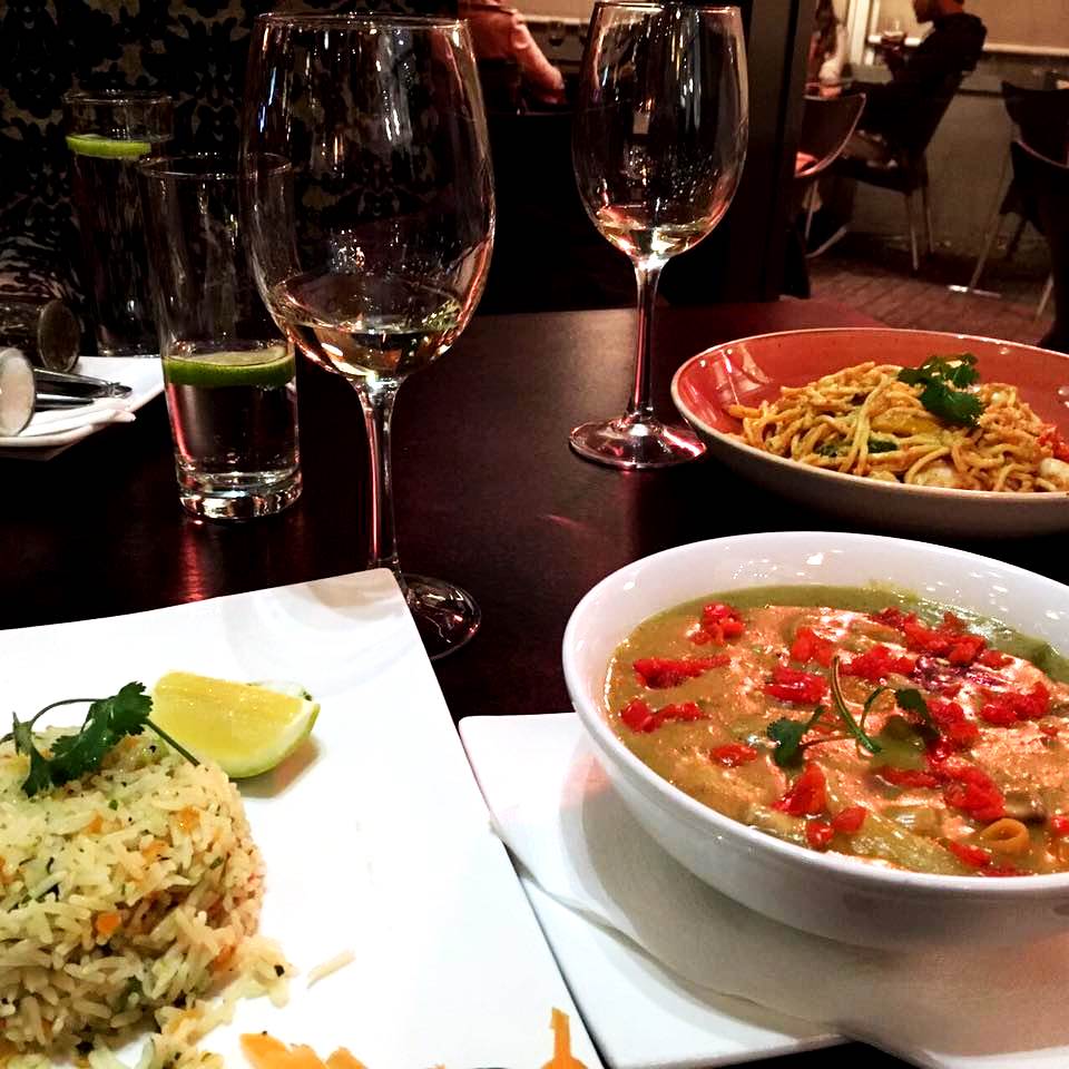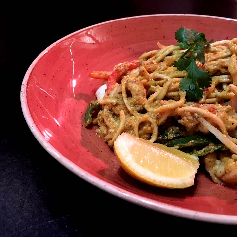 For our mains, we chose the thai green chicken curry and the prawn & calamari fusion. A third dish of chicken, roasted chills and cashew nuts, with stir-fry veggies and egg noodles is also an option.