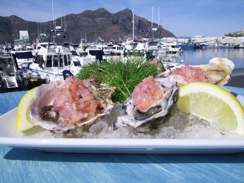 The restaurants extensive menu comprises of premier seafood, freshly caught line fish caught daily by the local fishermen, Cape Rock Lobster, succulent LM prawns, fresh black mussels picked from the rocks of the local shores, legendary tender calamari steaks, Yellow fin tuna steaks and live oysters, as well as the finest cuts of local A-grade meats. There is also a great selection of appetizing salads, lighter snack baskets for the not so hungry, wood fired pizzas and hearty breakfasts.