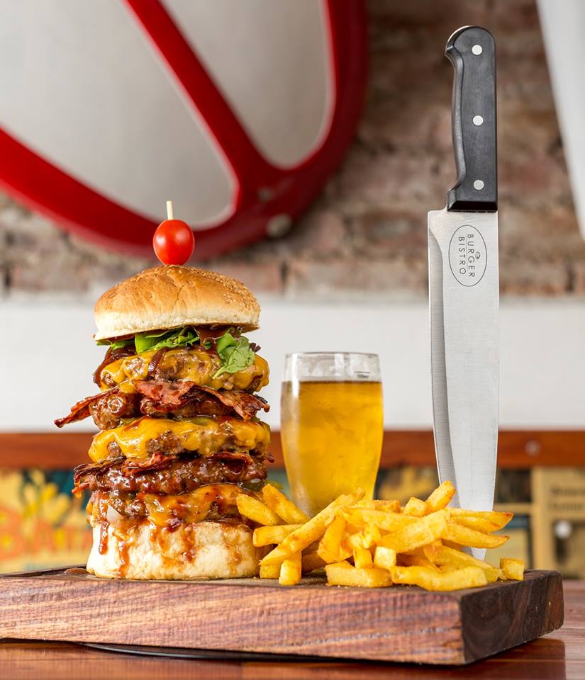 Tackle this monster of a burger with 5 x 200g Pure Beef Patties, Cheddar, Bacon, Chips and a 500ml Draught or Milkshake for R199.50. As an incentive, finish Mike in 30 minutes and you get to keep your Limited Edition Burger Bistro Knife.