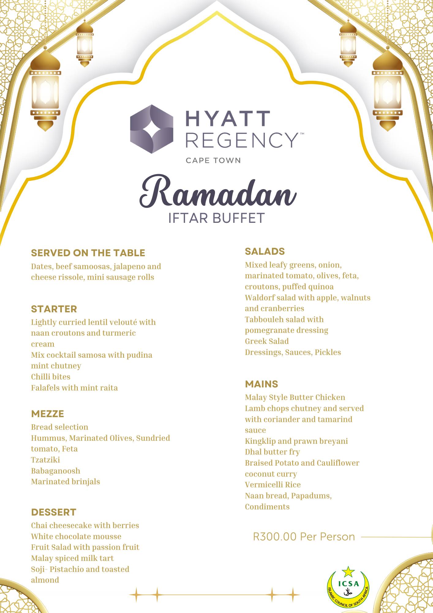Throughout the holy month of Ramadan, Hyatt Regency Cape Town will offer the popular Ramadan Iftar Buffet menu once again.