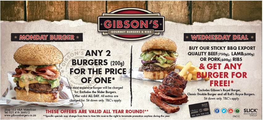 Ribs & Burger Specials at Gibsons Gourmet Burgers