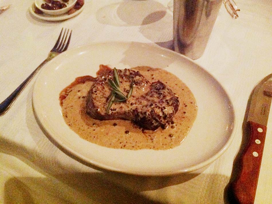 I was feeling slightly depressed as I had just finished the bowl of biltong. But fear not, our waiter came to the rescue bringing our starters. An entire wheel of fried crumbed camembert (R74) was just what I needed. The inside was ripe and piquant so that the cheese wouldn’t ooze out and cover your entire plate once you started eating. It came with a wonderful cranberry jelly that Hussar Grill prepares on-site. We also enjoyed an Italian tomato soup (R38) which comes highly recommended. It has been a house speciality at Hussar Grill for the past thirty year. The soup had a rich aroma with a creamy consistency and nice balance of herbs to enhance the flavour. It was an excellent starter on a cold winter’s evening.