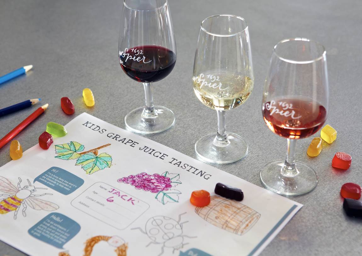 While the adults indulge in a chocolate and wine tasting of our Creative Block blends, the little ones can enjoy a grape juice tasting and learn more about our farm with an educational colouring sheet.