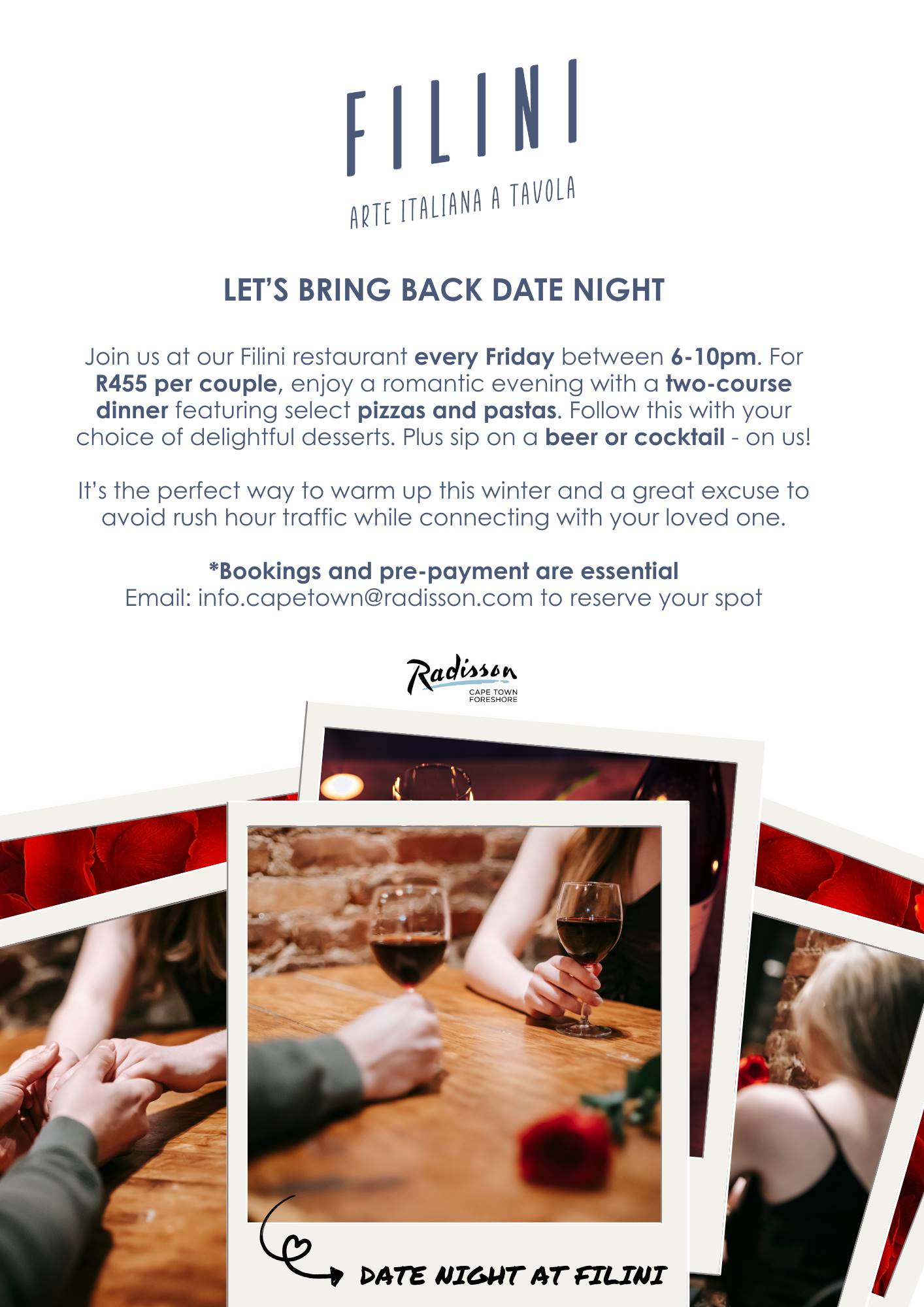 Filini Restaurant at Radisson Hotel Cape Town is rekindling the romance with a brand new restaurant special.