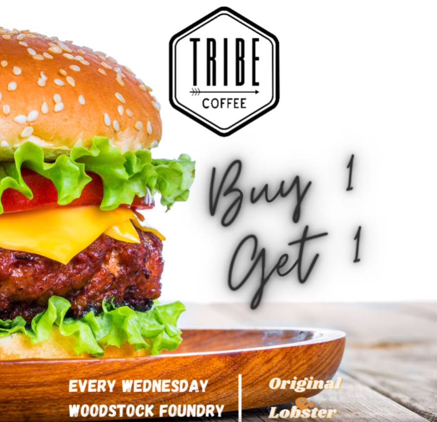 Buy one burger, get one free at Tribe Coffee.