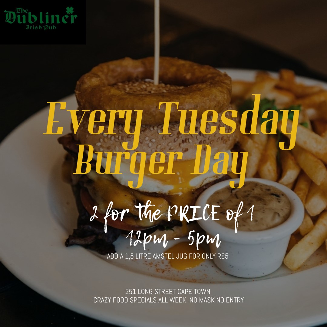 It’s always a good time at the Dubliner & Kenney’s on Long. The pub has been an institution on Long Street for comfort food, great drinks and a guaranteed good time. Brand new specials have now been introduced to give you their best burgers at the best prices.
