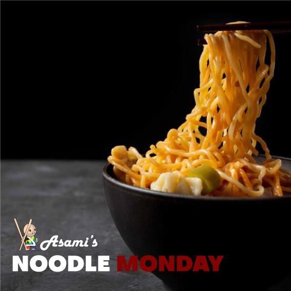 Whether it’s chow mein, udon, pad thai or Singapore noodles, get two and only pay for one every Monday at Asami’s.