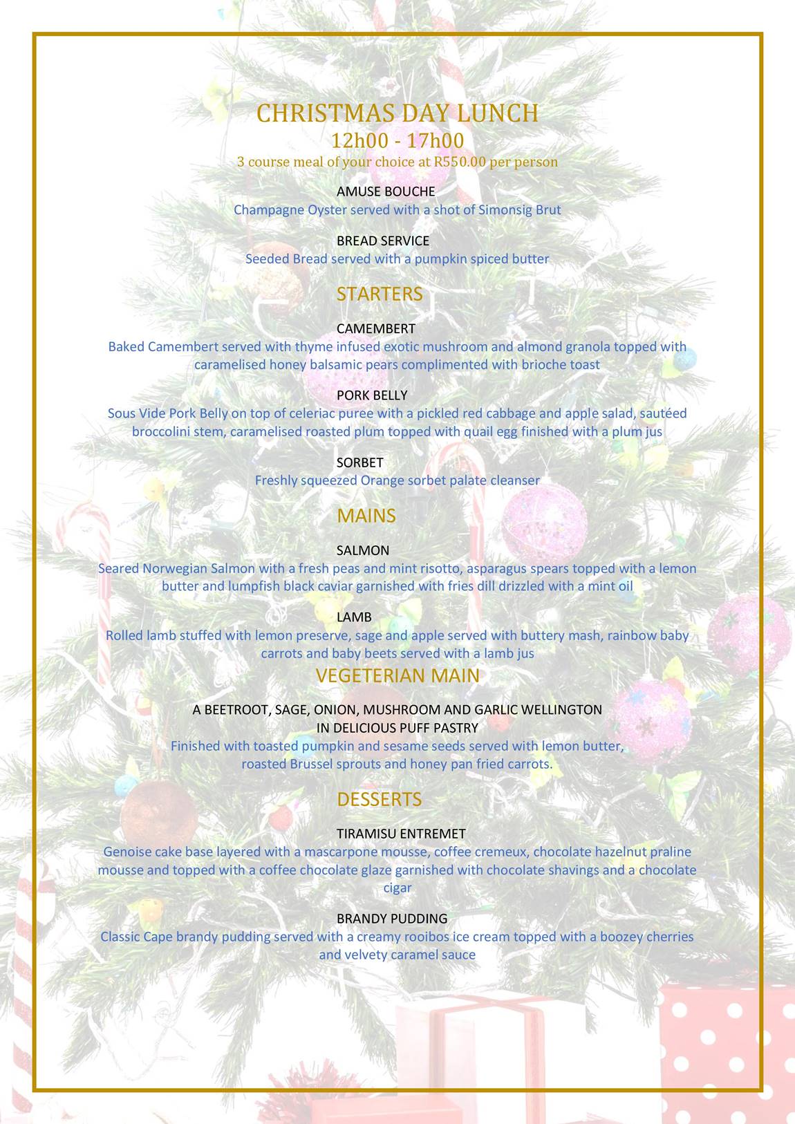 The Hout Bay Manor is famous for its delicious menus that celebrate every occasion! This Christmas they have put together an amazing array of dishes to celebrate with you and your family on this special occasion. Their high-quality food and world-class hospitality are a guaranteed winning combo for a memorable Christmas.