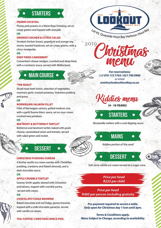 The cost is R485 per adult and R225 per child. Email Events@LookoutHoutBay.co.za to book your table today.