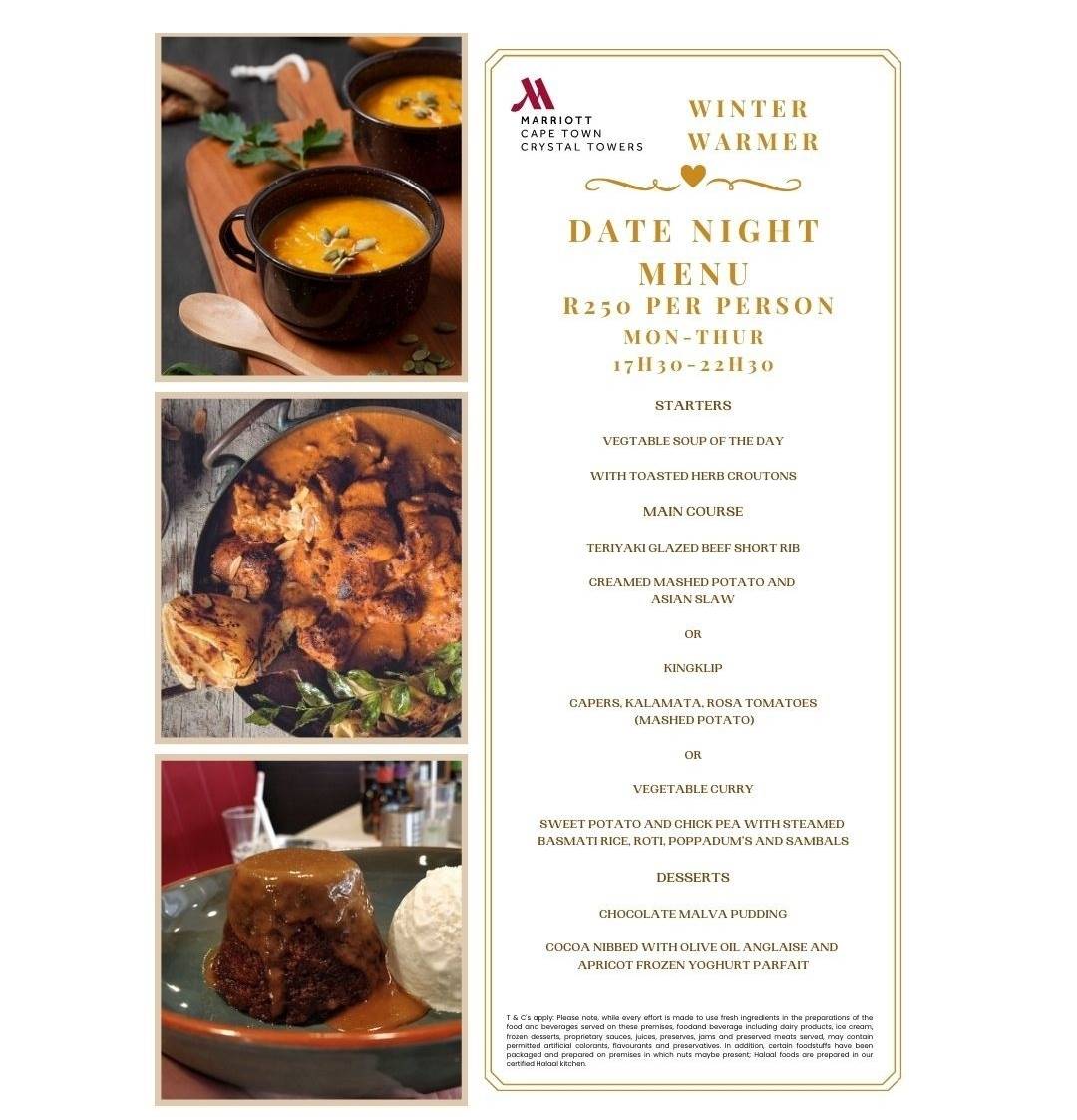 Cape Town Marriott Hotel Crystal Towers presents its irresistible Winter Warmer Date Night Special.