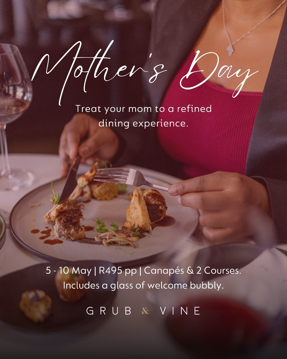 For just R495 per person, she’ll enjoy elegant canapés, two beautifully crafted courses, and a glass of welcome bubbly—because moms deserve champagne on arrival, always.