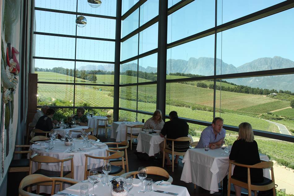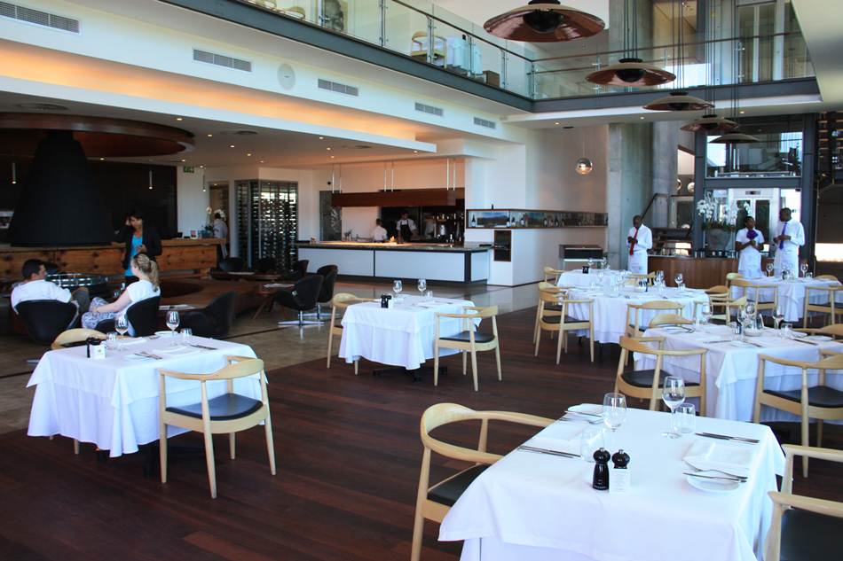 Waterkloof is a very modern space with spectacular views of False Bay and Sir Lowry’s Pass. The restaurant is set in a modern glass and steel building located at the highest point of the vineyard. Big windows allow for plenty natural light to flow in.
