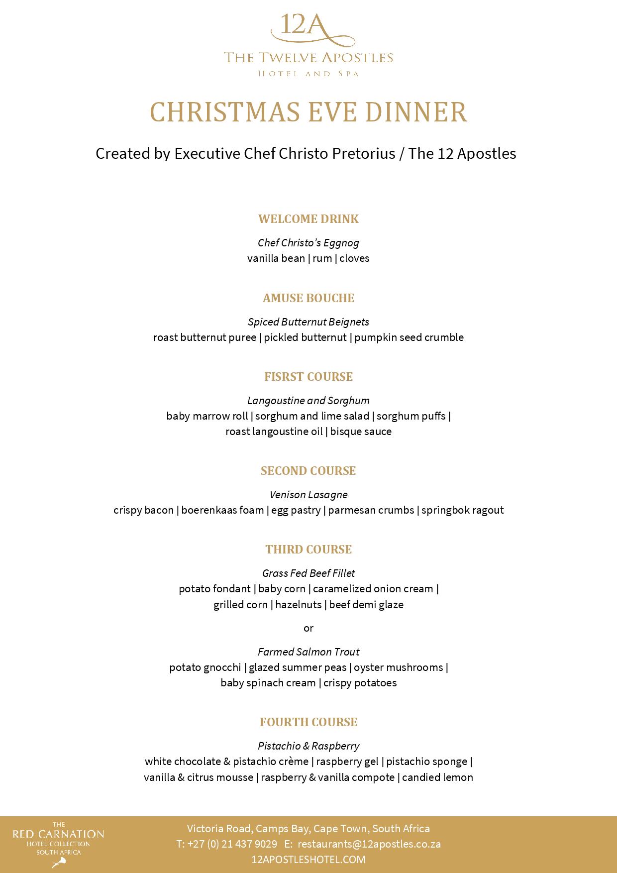 Five stars for the 12 Apostles Hotel & Spa Christmas Eve dinner menu.