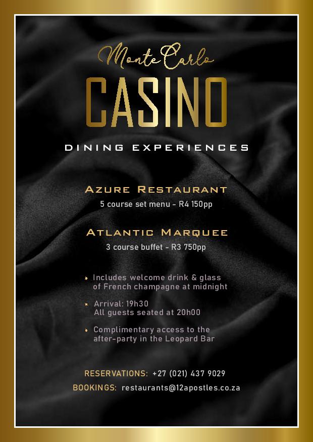 - Atlantic Marquee will be hosting a 3 course buffet for R3750 pp. [full menu]